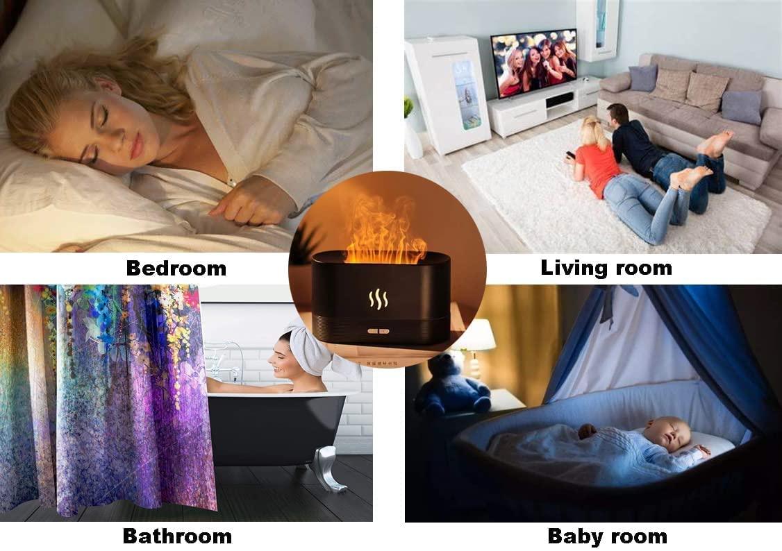 - 25dB Super Quiet — Endowed with a unique noise reduction technology, the essential oil diffuser’s noise can be controlled below 25dB cooperate with flame night light with adjustable brightness to create a perfect sleeping atmosphere.