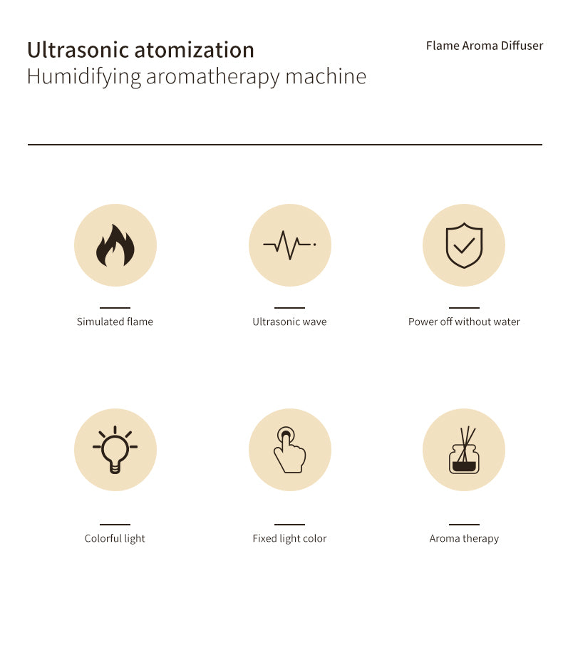 Introducing our innovative Flame Diffuser Humidifier, a versatile device that combines the soothing benefits of a humidifier and the delightful aromas of an essential oil diffuser. With its advanced ultrasonic technology, this USB-powered aroma diffuser creates a calming ambiance and adds a touch of elegance to any space.