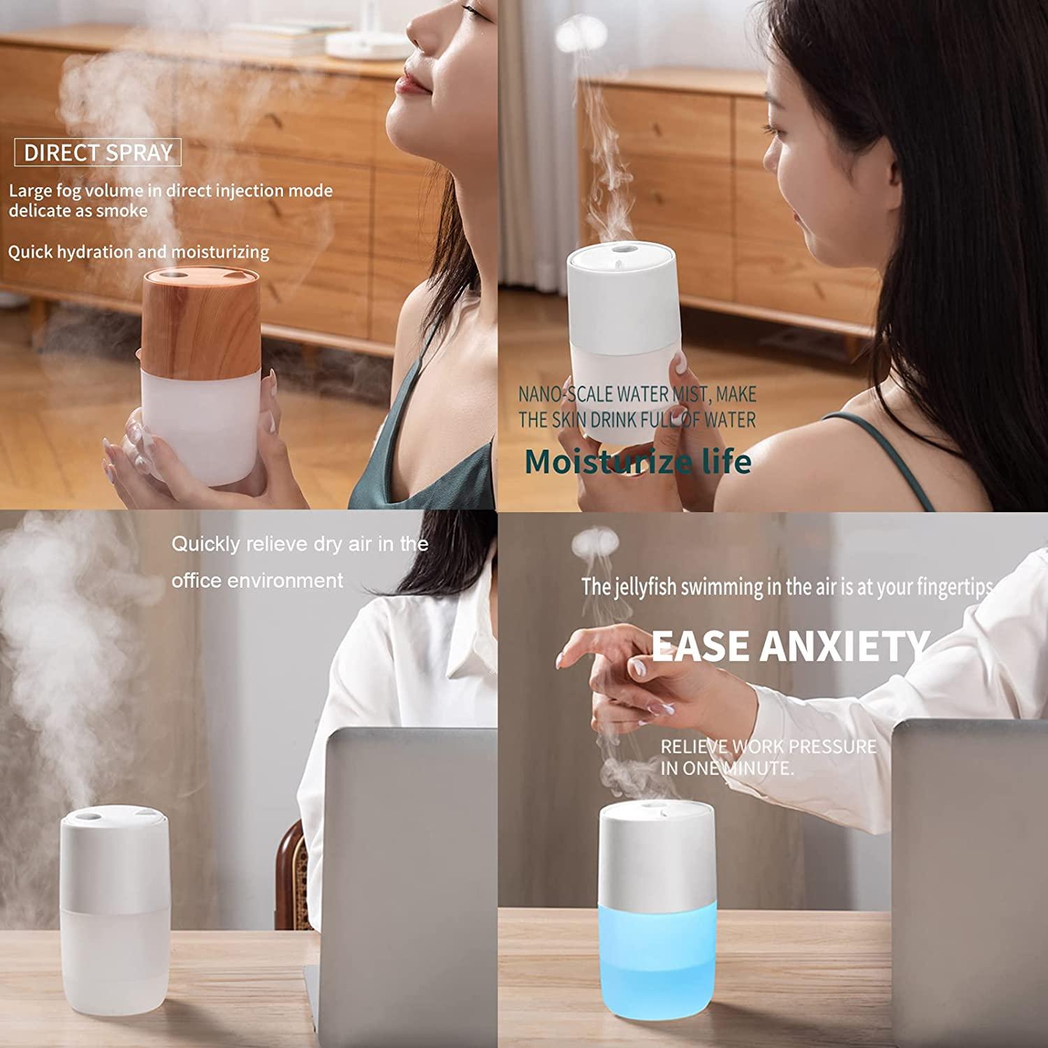 Portable Mini Humidifier, Jellyfish Elf Cool Mist Ultrasonic Humidifier for Office Car Yoga & Travel (Light Wood Grain).