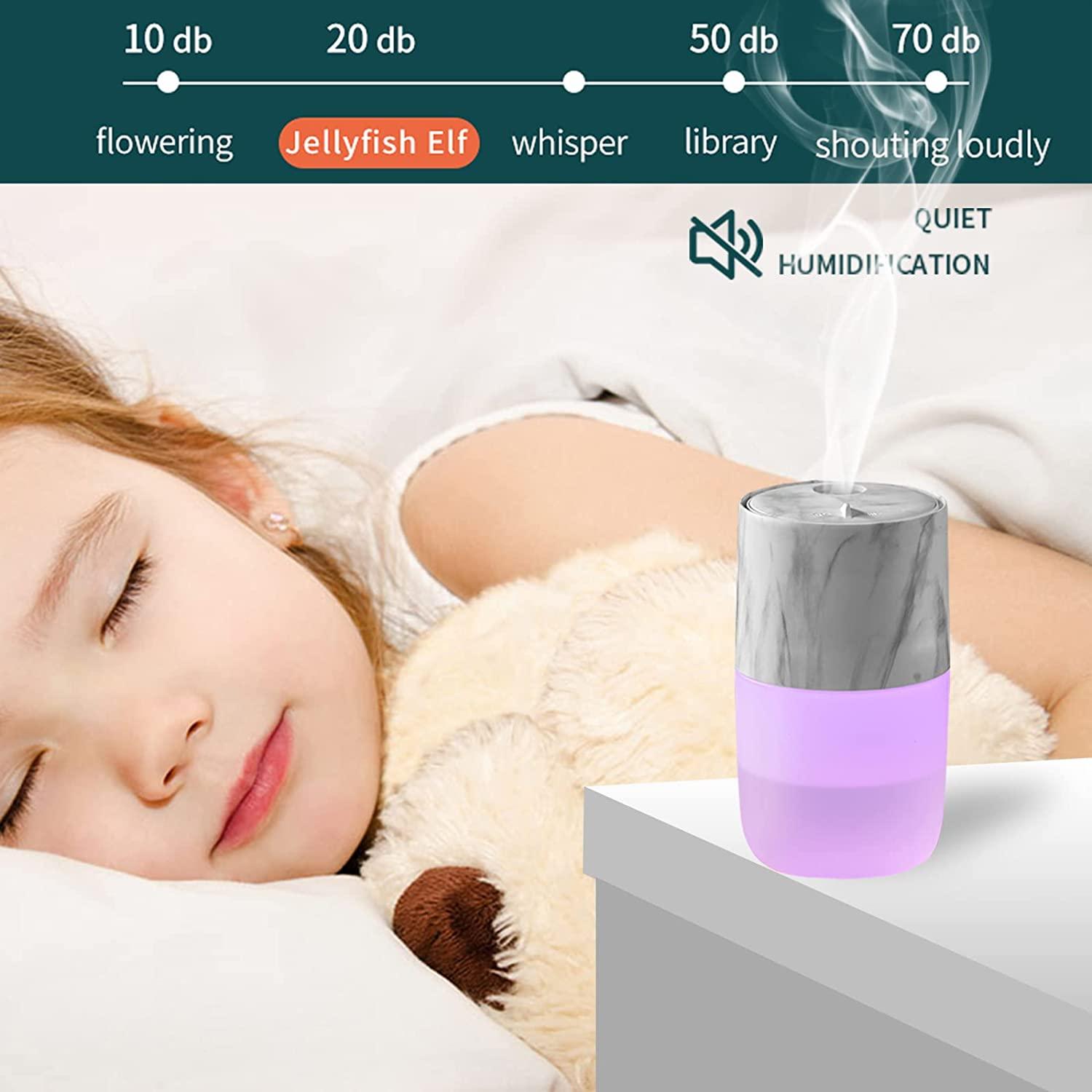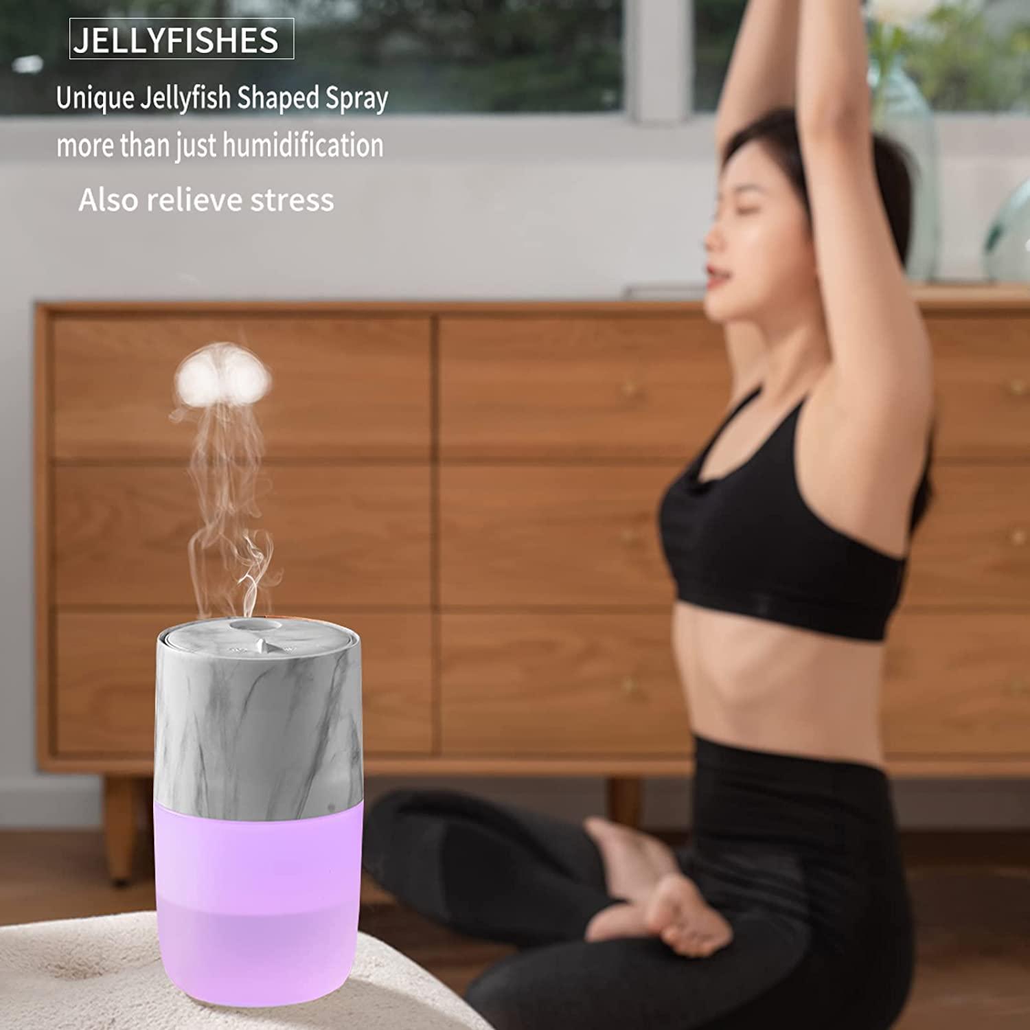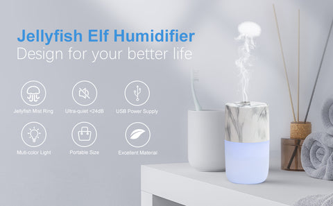 Portable Mini Humidifier, Jellyfish Elf Cool Mist Ultrasonic Humidifier for Office Car Yoga & Travel (Marble White).