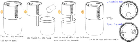 - Mini humidifier for soothing mood:cute humidifiers has 2 mist modes. The unique jellyfish-shaped spray can not only humidify the air, but also the jellyfish swimming in the air is within reach, which can be viewed and decompressed. The fast hydration mode can be used as a Face humidifier to effectively moisturize dry skin and help reduce skin peeling.PS:Do not use essential oils or distilled water.It will block the cotton swab and make the humidifier unusable. Please use tap water.