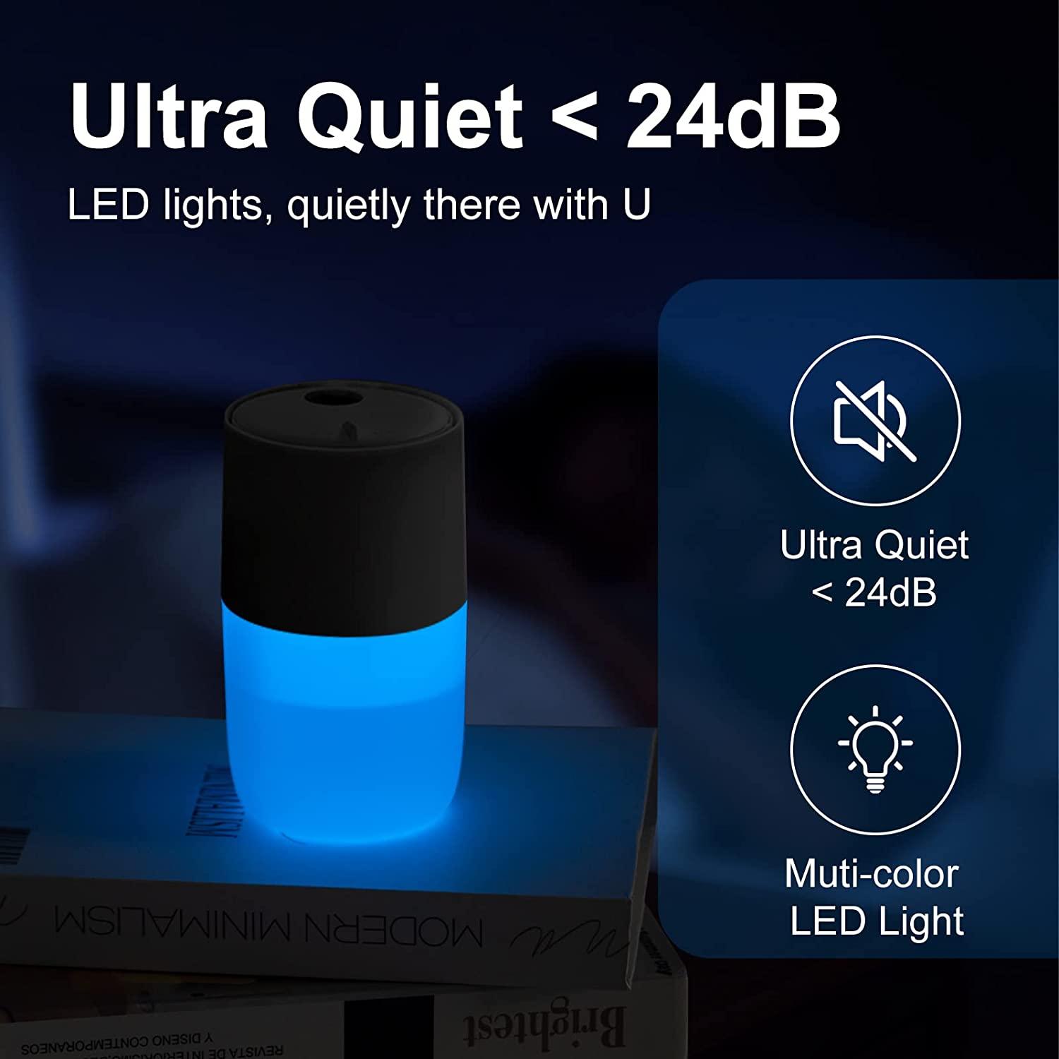 - Quiet Ultrasonic Humidifier:This small humidifiers for office operate at low than 32dB almost silent frequency, which will not affect your work and sleep.The mini humidifier for home, office desks and travel. It is a perfect choice for your life, work or as a gift!