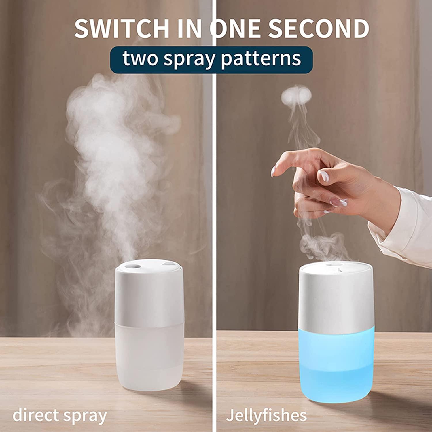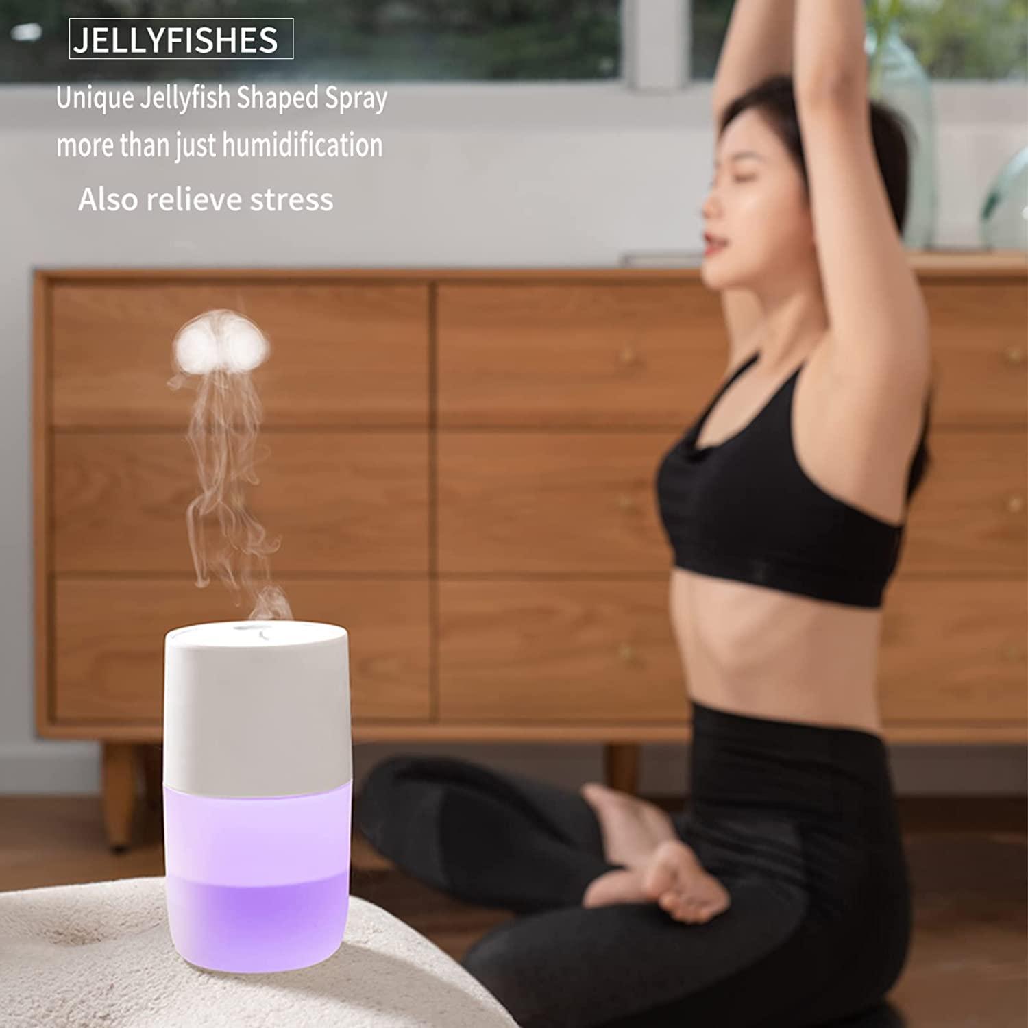 - Mini humidifier for soothing mood:cute humidifiers has 2 mist modes. The unique jellyfish-shaped spray can not only humidify the air, but also the jellyfish swimming in the air is within reach, which can be viewed and decompressed. The fast hydration mode can be used as a Face humidifier to effectively moisturize dry skin and help reduce skin peeling.PS:Do not use essential oils or distilled water.It will block the cotton swab and make the humidifier unusable. Please use tap water.