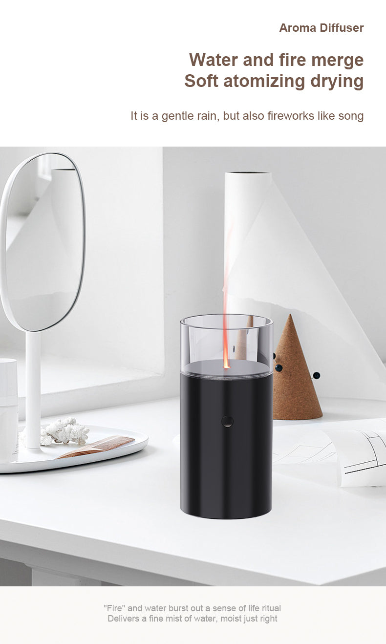 Transform Your Space with our Colorful Flame Air Aroma Diffuser: Upgrade for Serenity and Style- Black.